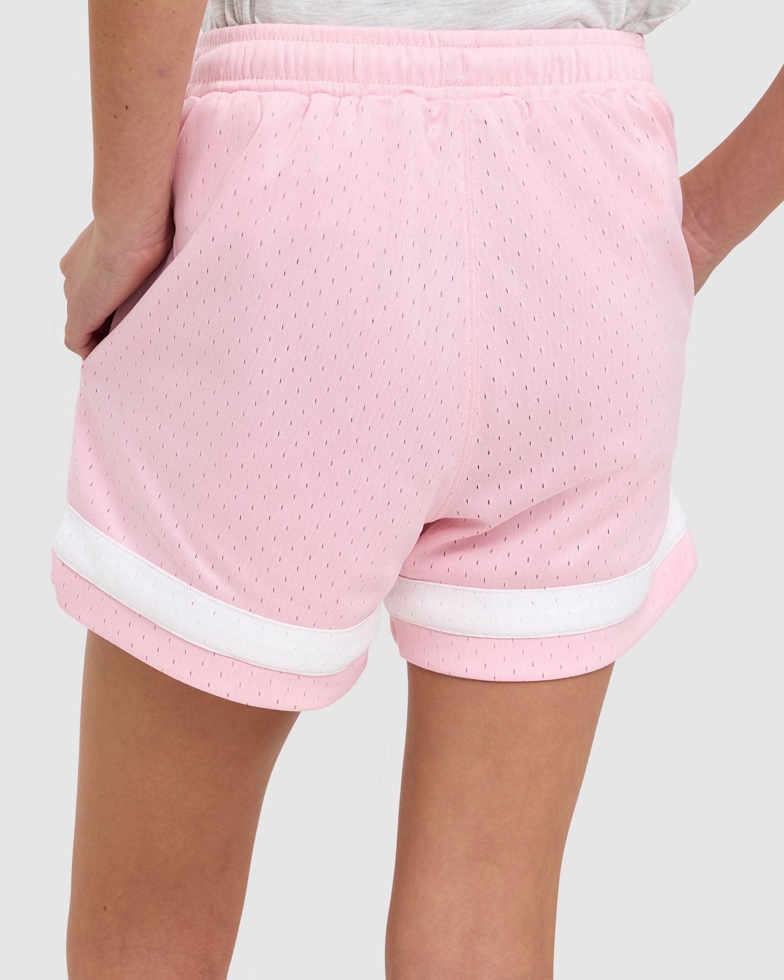 Out Girls Keisha Bball Shorts bring comfort and style to the court or street. Made from all-over breathable mesh, they feature an elastic waistband for a secure fit, handy side pockets and a bold hem stripe for a sporty finish.