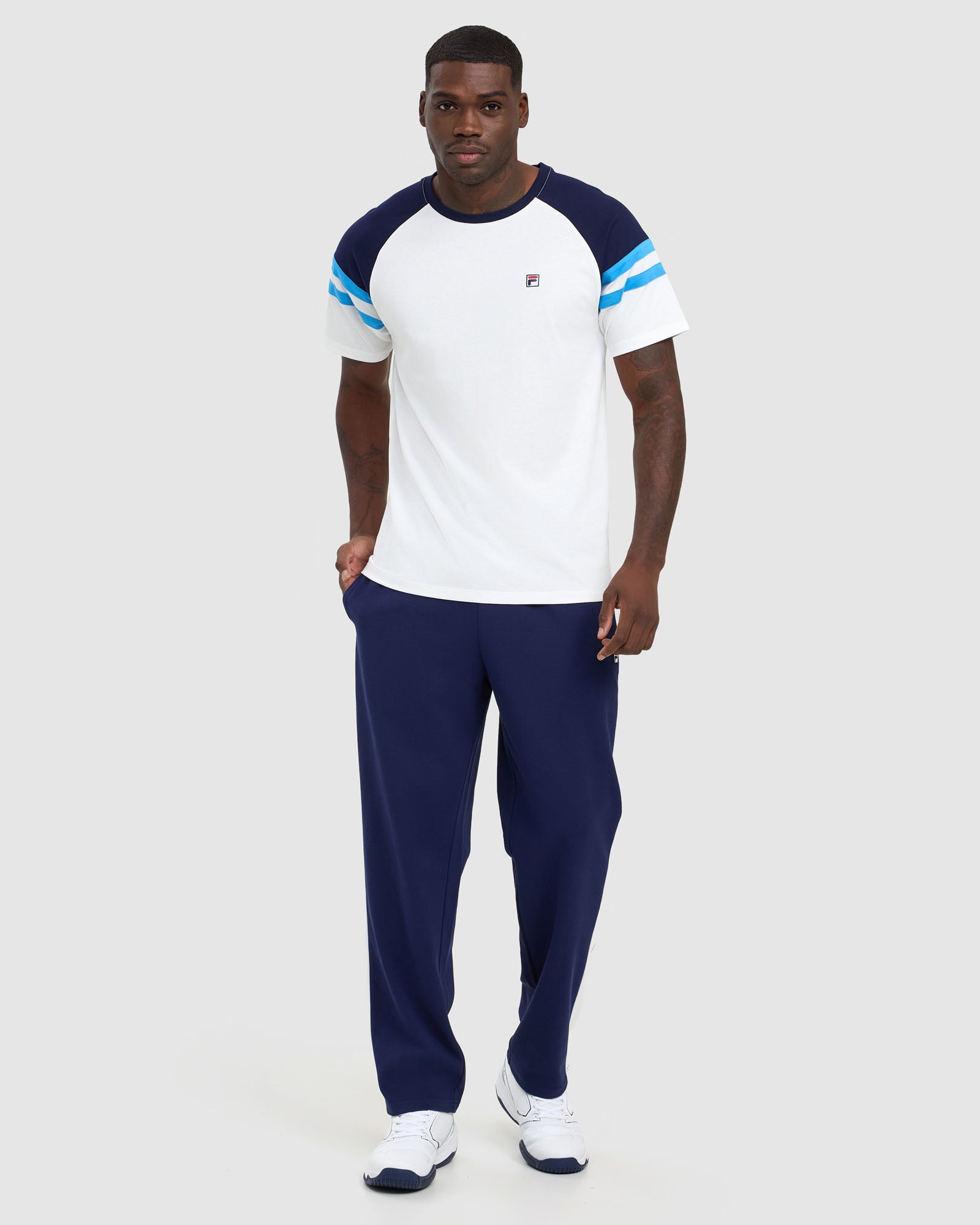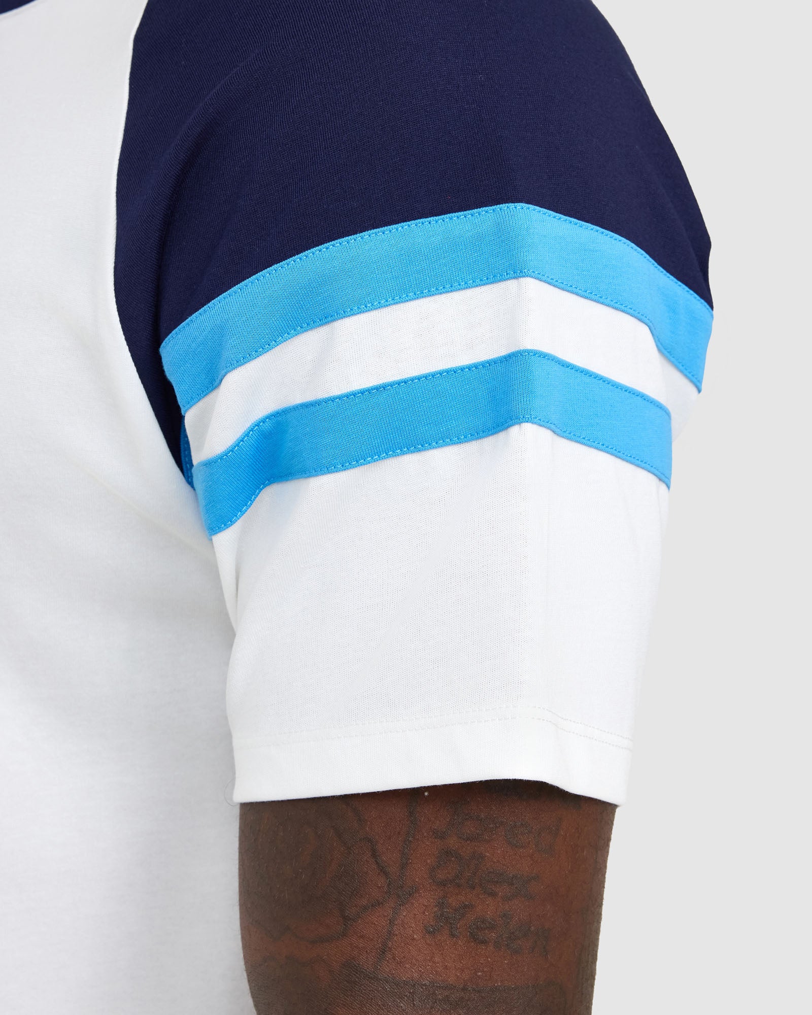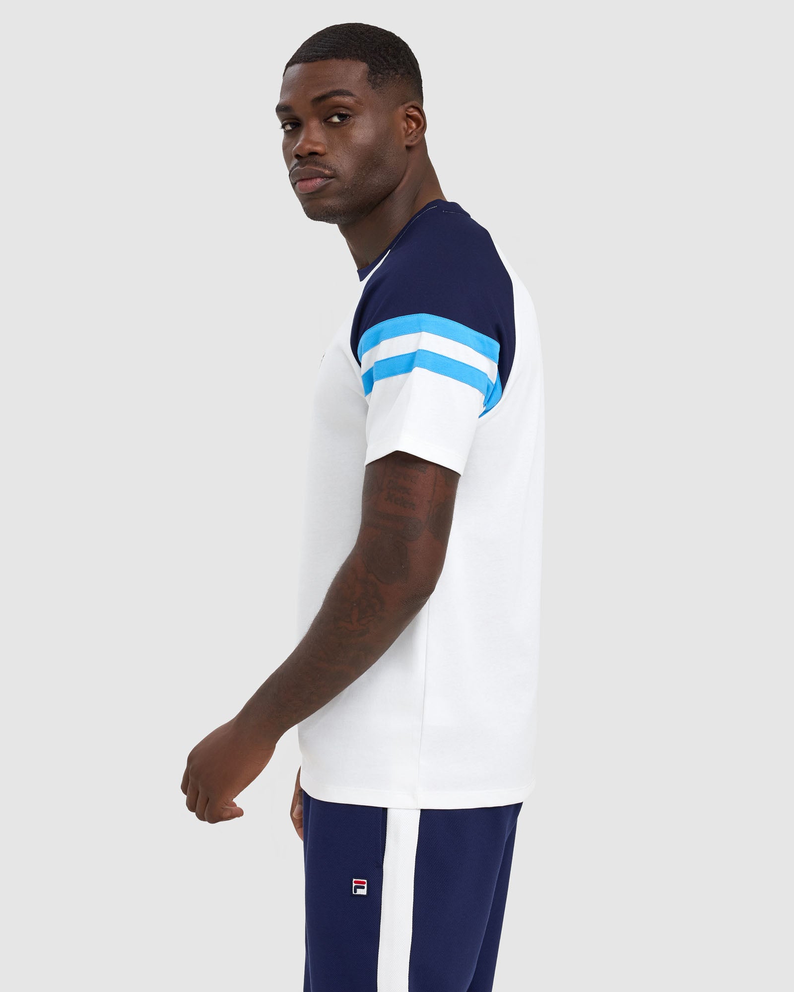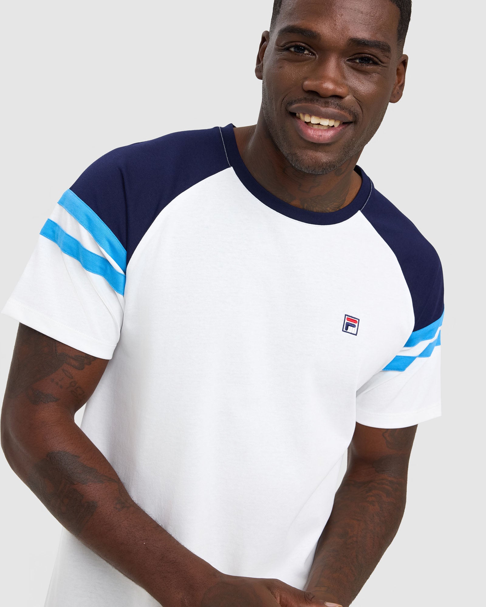 Refresh your everyday lineup with our Men's Olin Tee. Available in 3 classic colours, this slim-fit tee is made from a soft cotton blend fabric for all day comfort. It features a ribbed crew neckline, short sleeves with contrast colour block panels for a bold look, and is finished with an embroidered FILA logo to left chest.