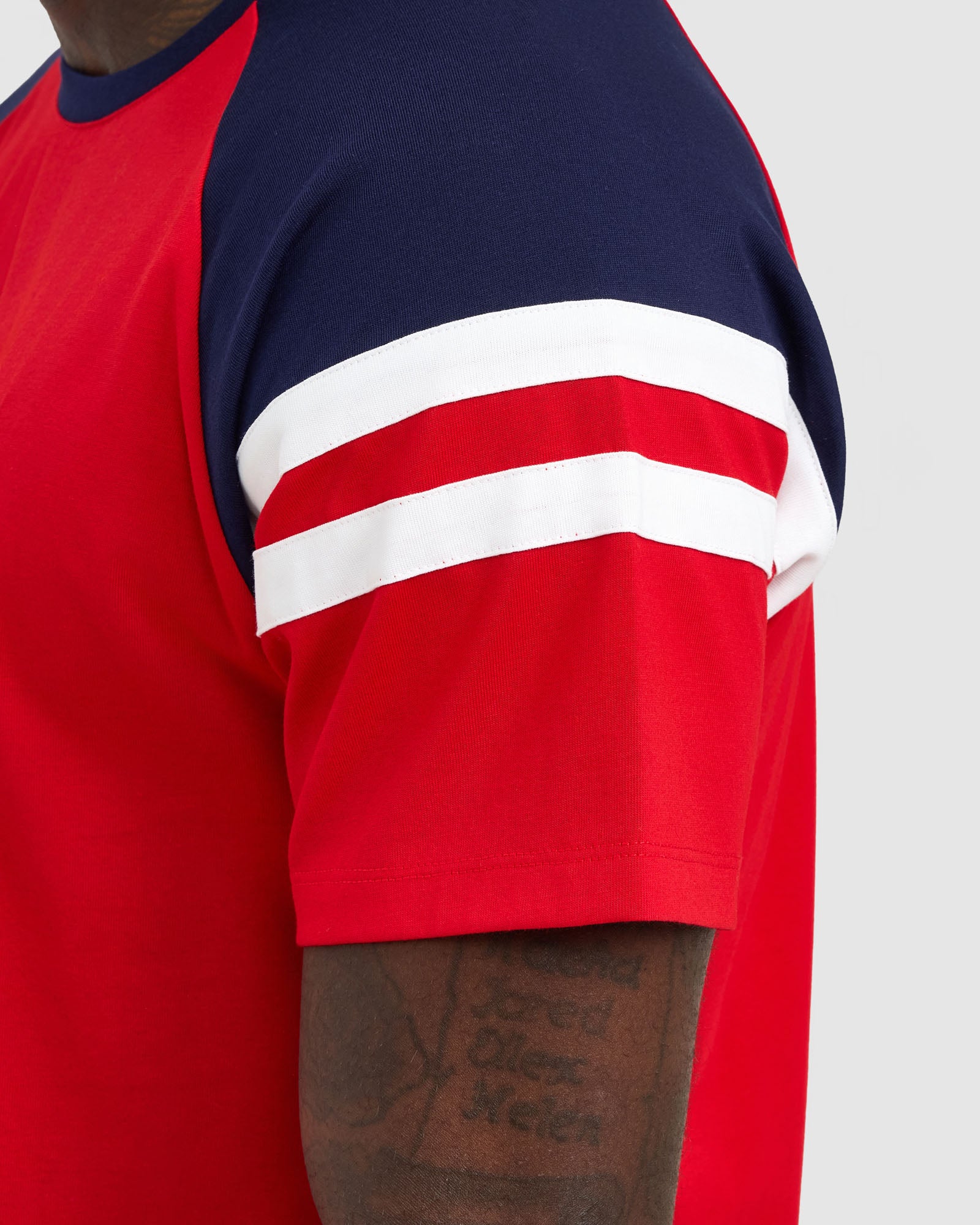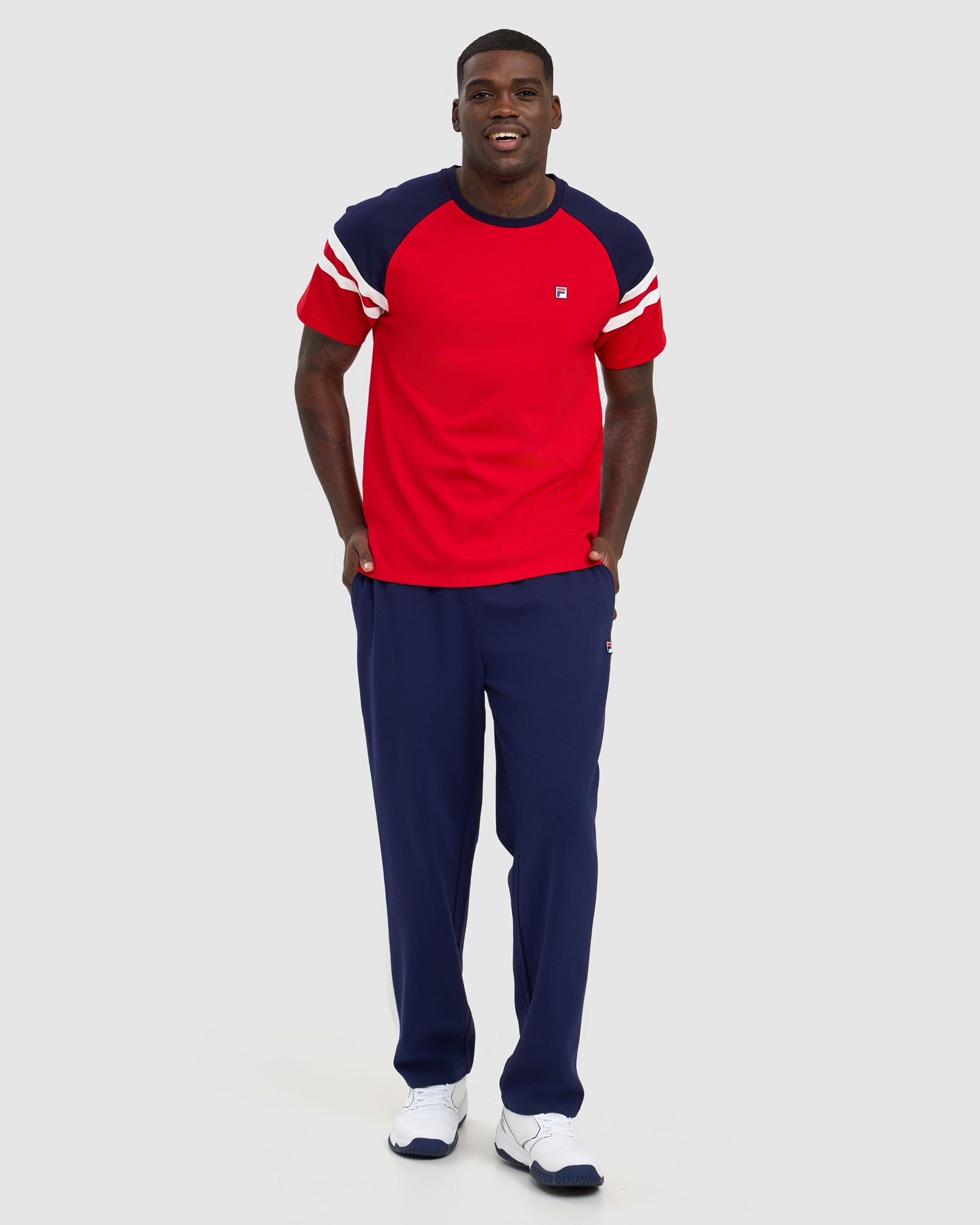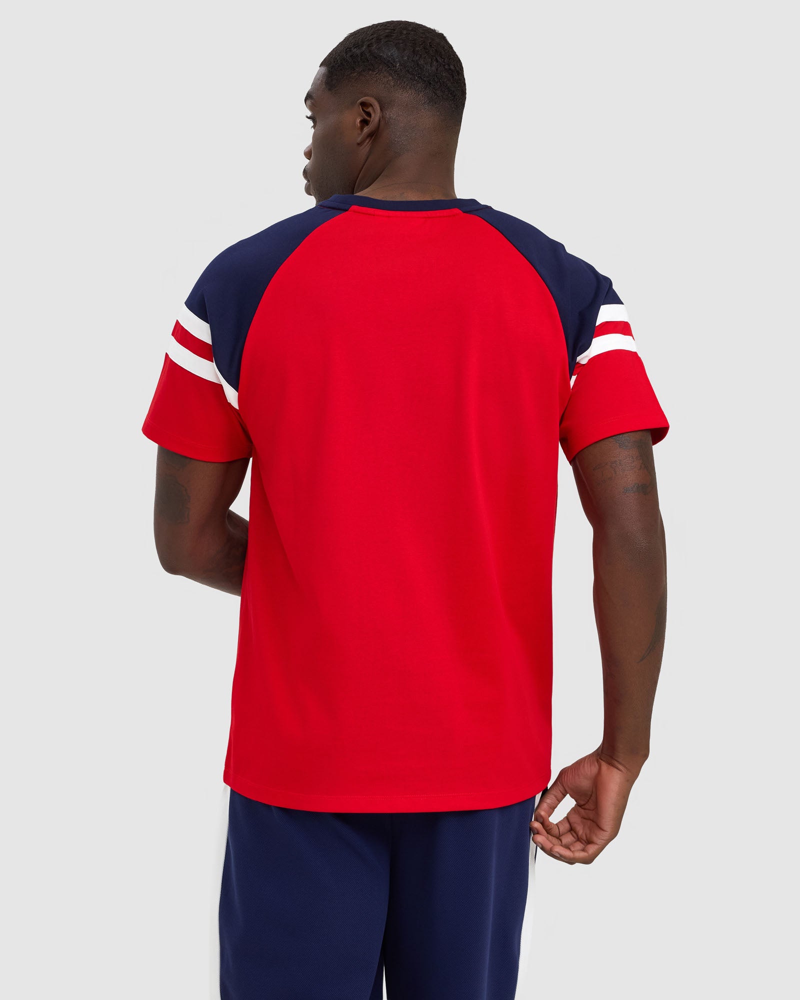 Refresh your everyday lineup with our Men's Olin Tee. Available in 3 classic colours, this slim-fit tee is made from a soft cotton blend fabric for all day comfort. It features a ribbed crew neckline, short sleeves with contrast colour block panels for a bold look, and is finished with an embroidered FILA logo to left chest.