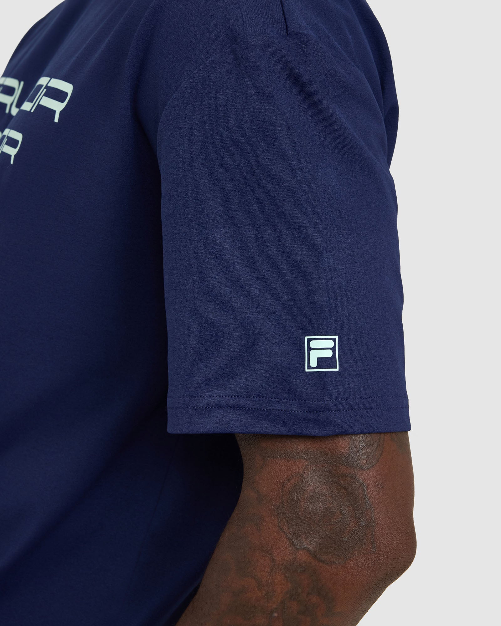 Push your limits with our Men's Storm Relax Tee. Made from a lightweight jersey, this tee with keep you cool and focused through every session. It features a classic crew neckline, short sleeves and is finished with a bold call out to our most iconic shoe - FILA Disruptor II.