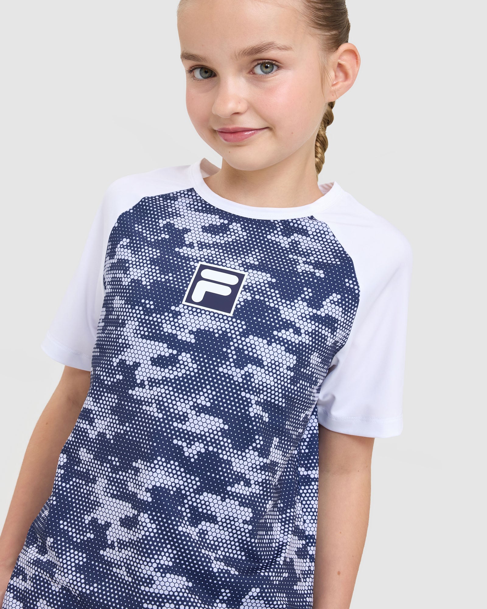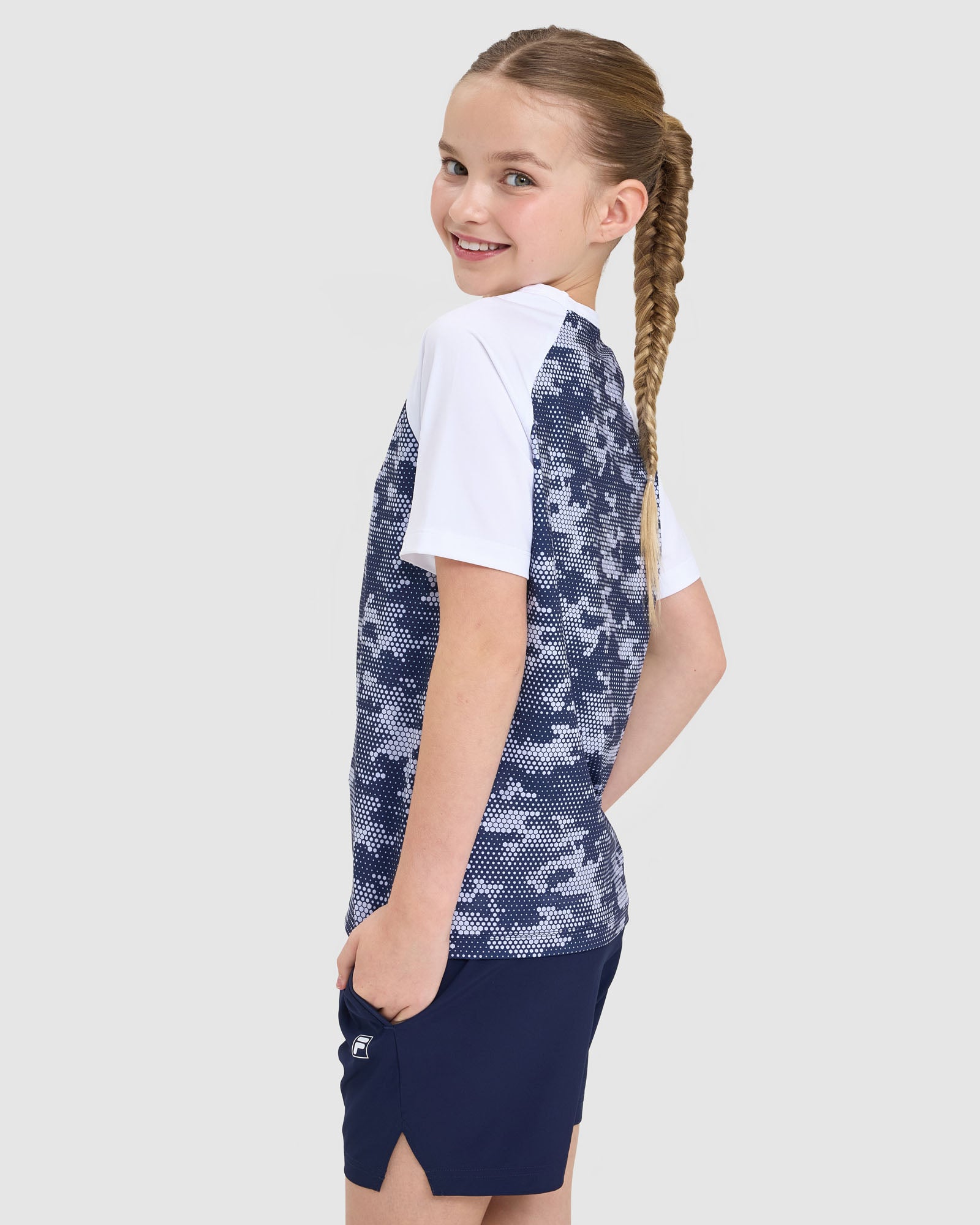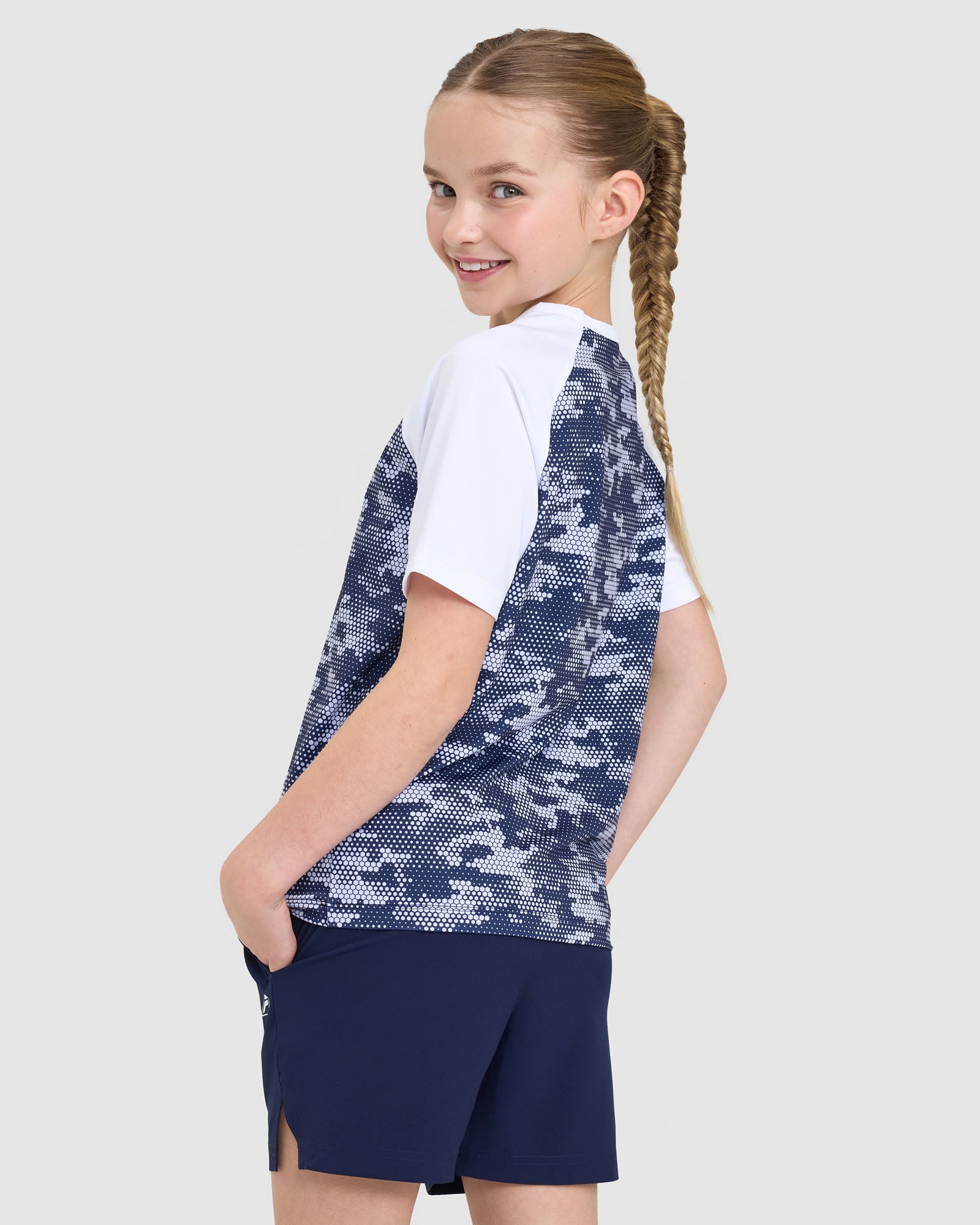 Built for comfort and performance, our Kids Alix QDry Tee features round crew neck, short contrast sleeves and an all-over pixel print. With it's regular fit and quick-drying fabric, it's the perfect choice for sport and active days.