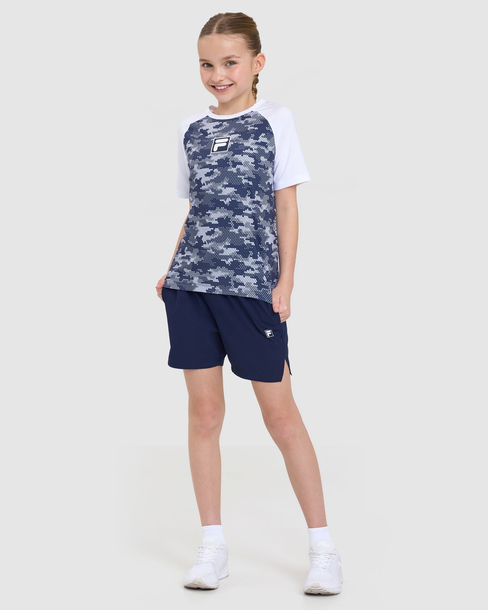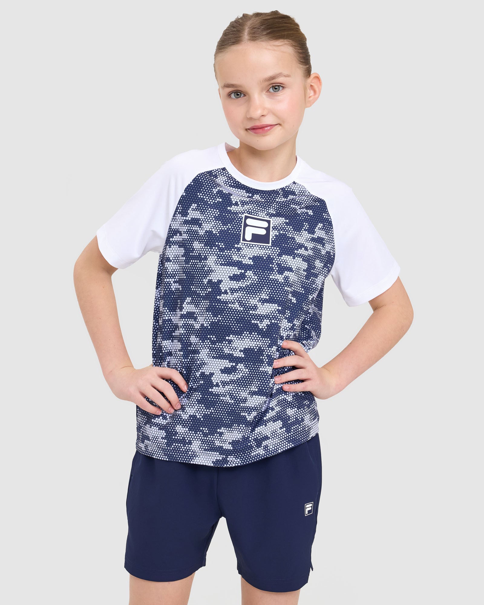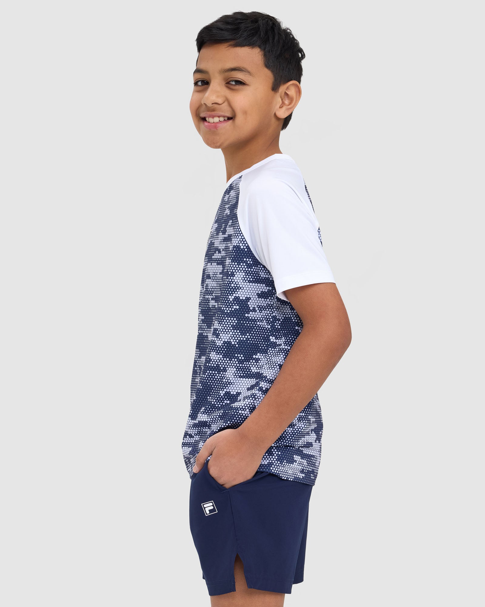Built for comfort and performance, our Kids Alix QDry Tee features round crew neck, short contrast sleeves and an all-over pixel print. With it's regular fit and quick-drying fabric, it's the perfect choice for sport and active days.