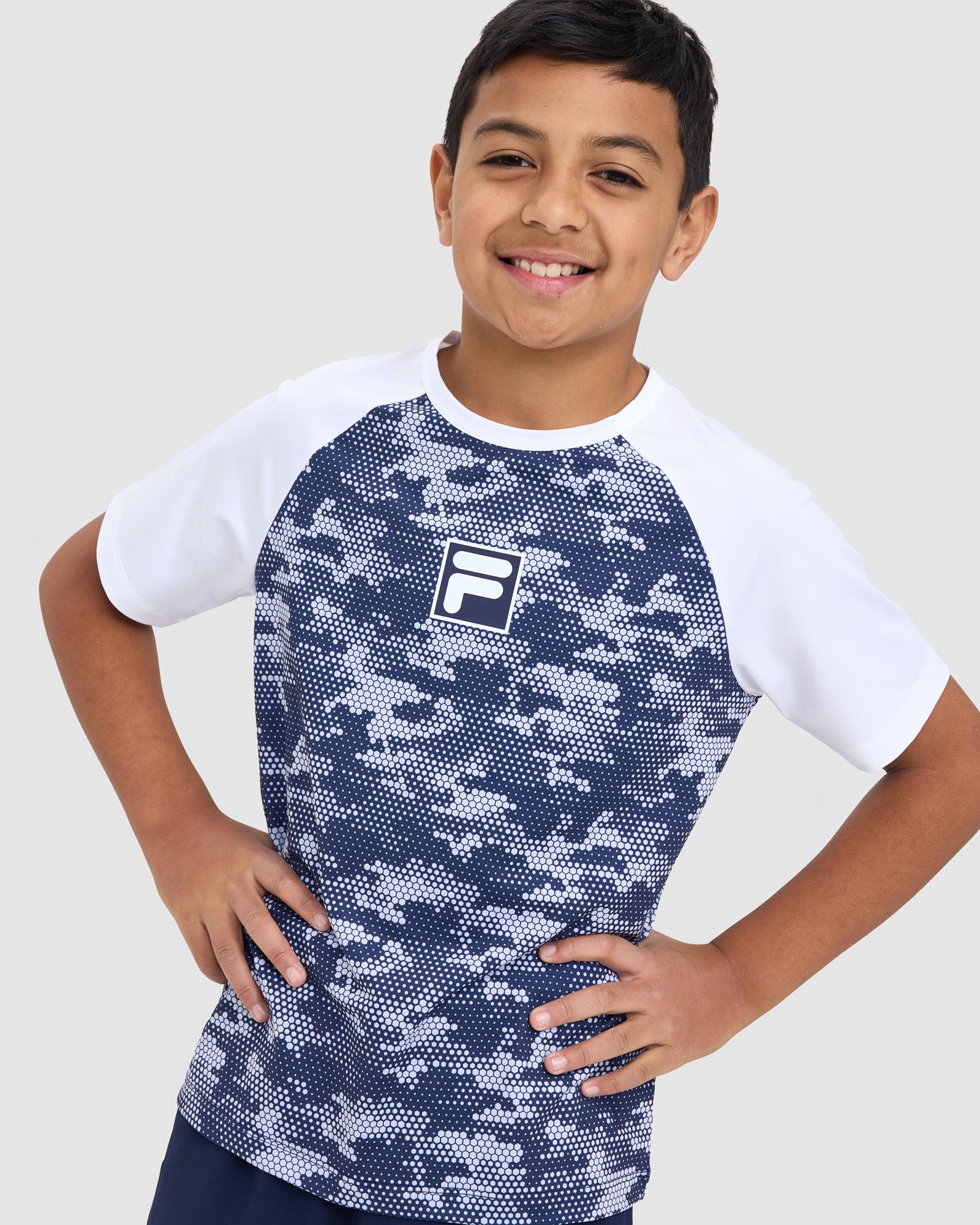 • FILA logo to center chest