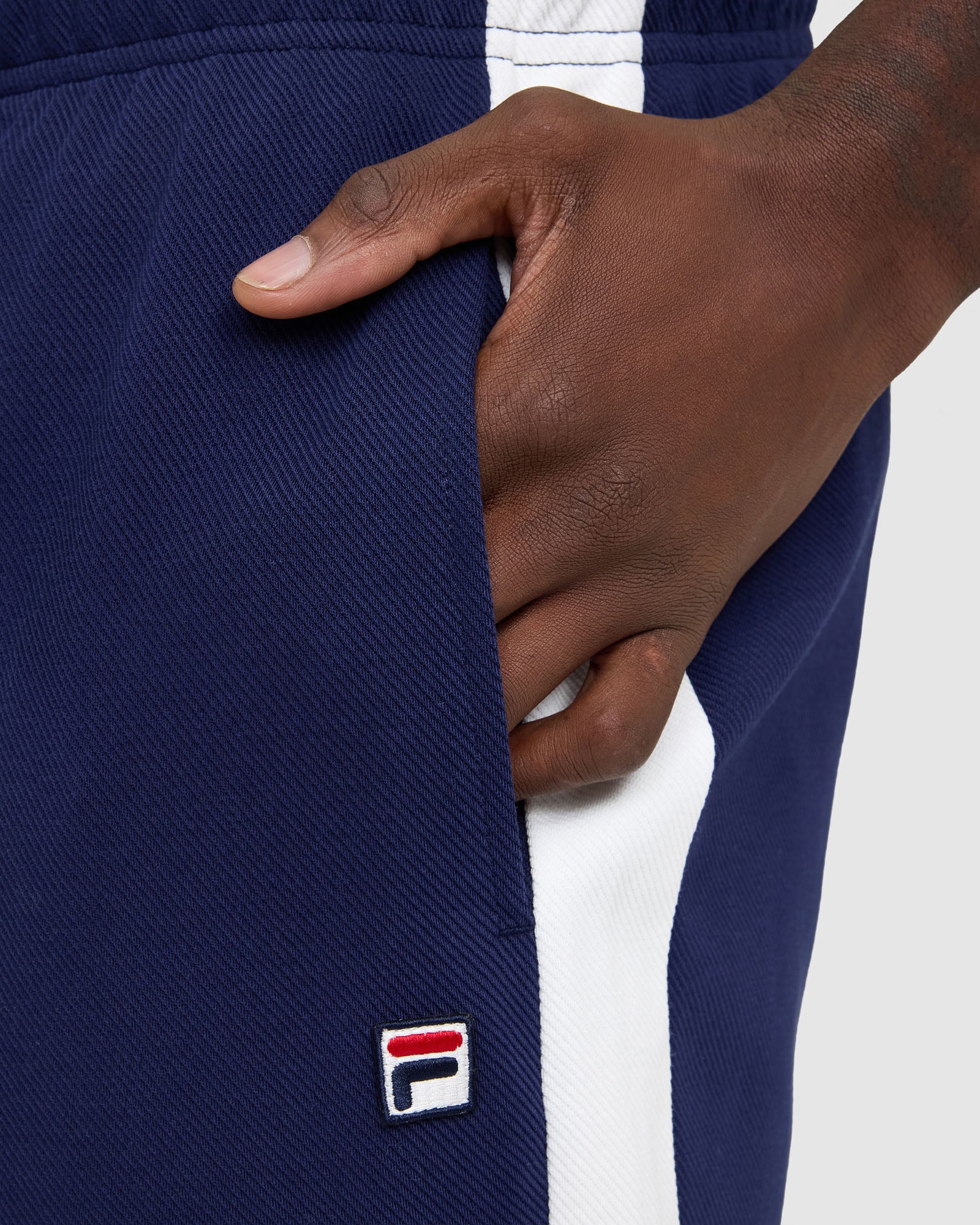 - Embroidered FILA logo to left leg
